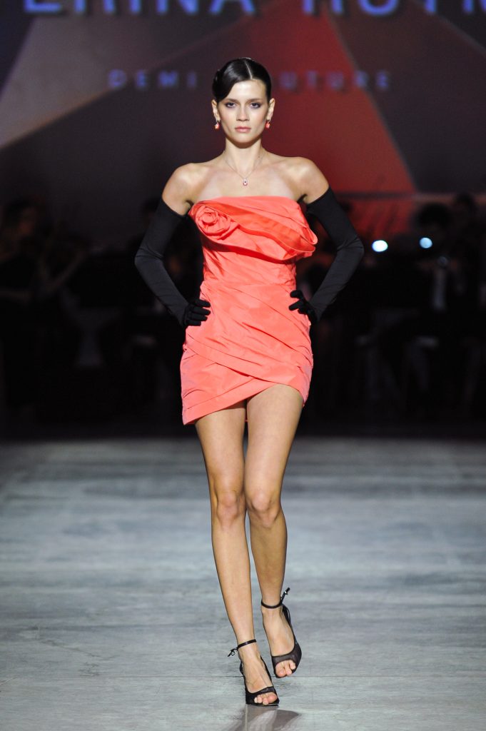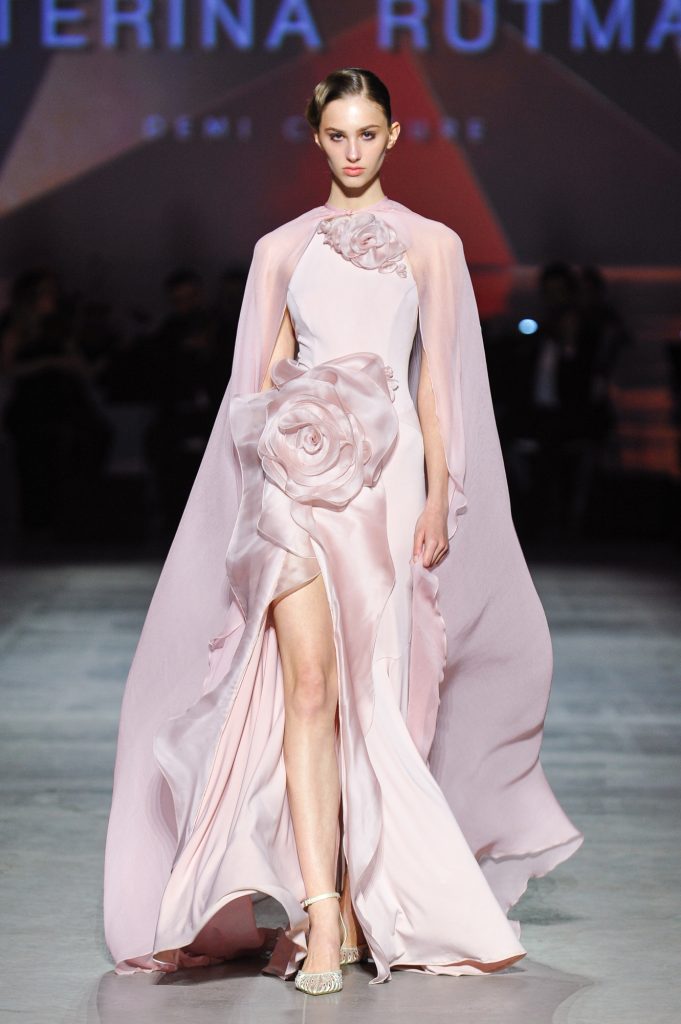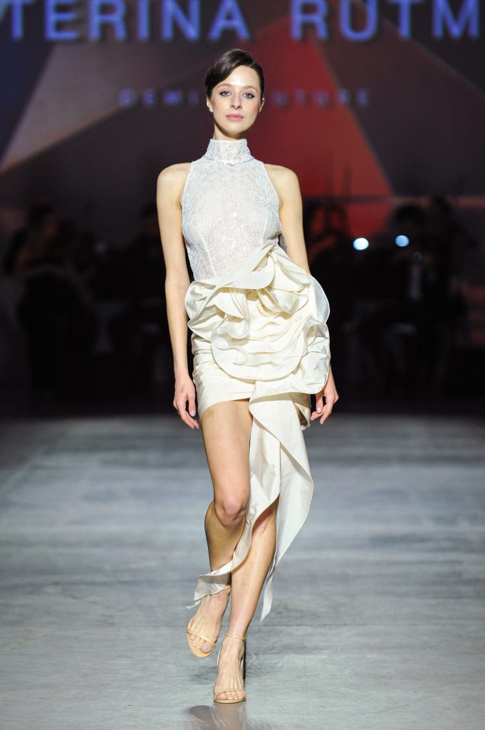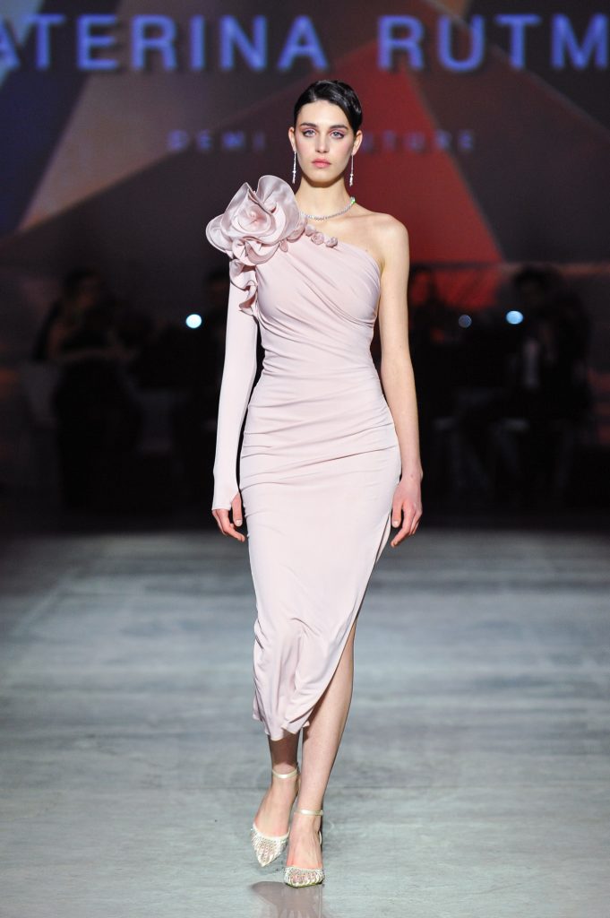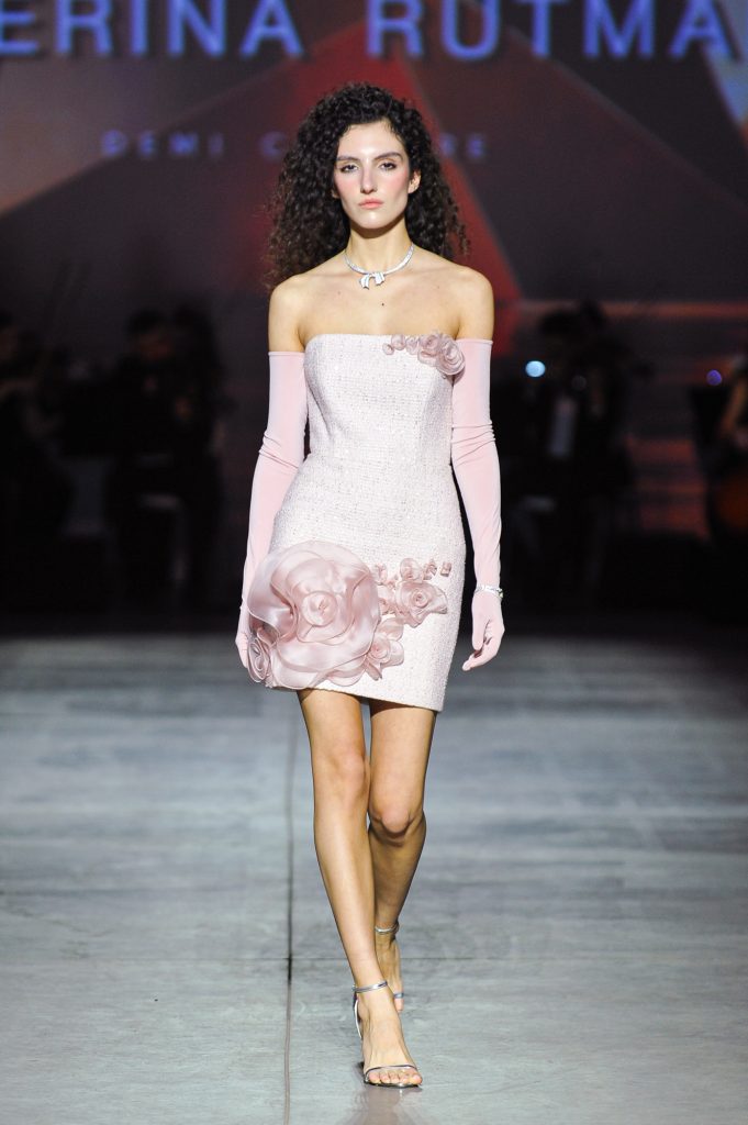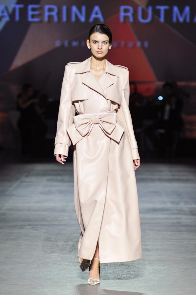 The silhouettes are constructed through geometry, asymmetry, and architectural logic, referencing Ekster’s principles of pure colour, diagonals, and contrasting planes. At the same time, bows and voluminous flowers — recognizable elements of the KATERINA RUTMAN signature — bring movement, emotionality, and a sense of modern femininity to the looks.