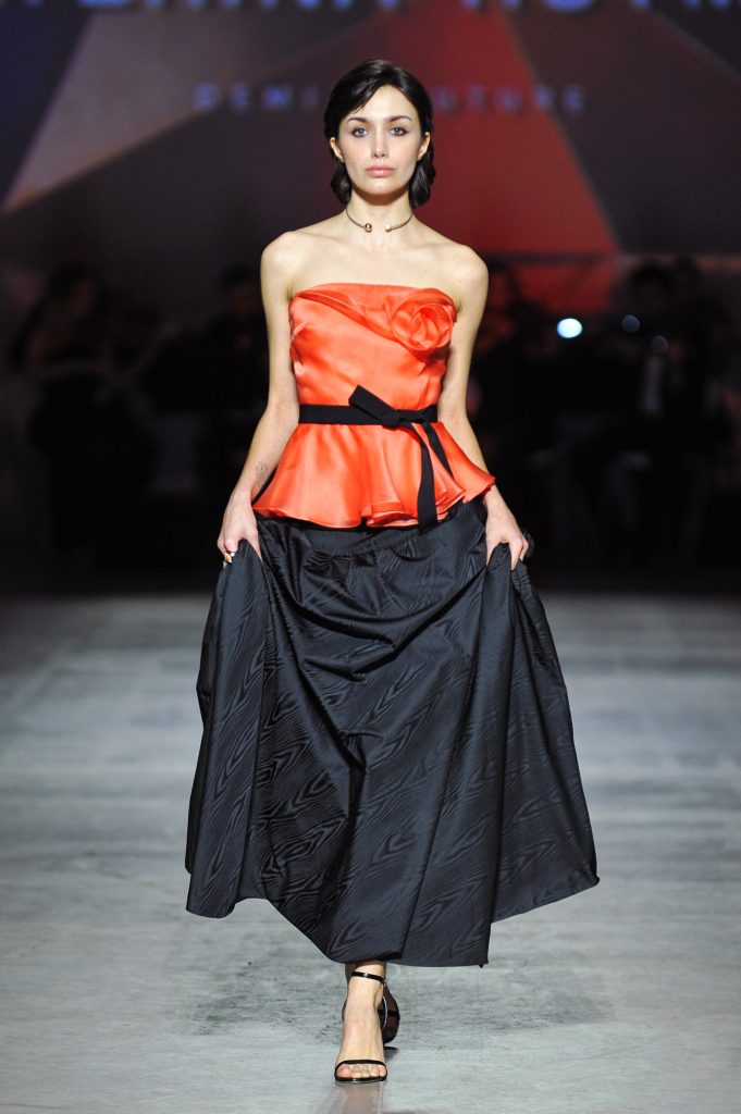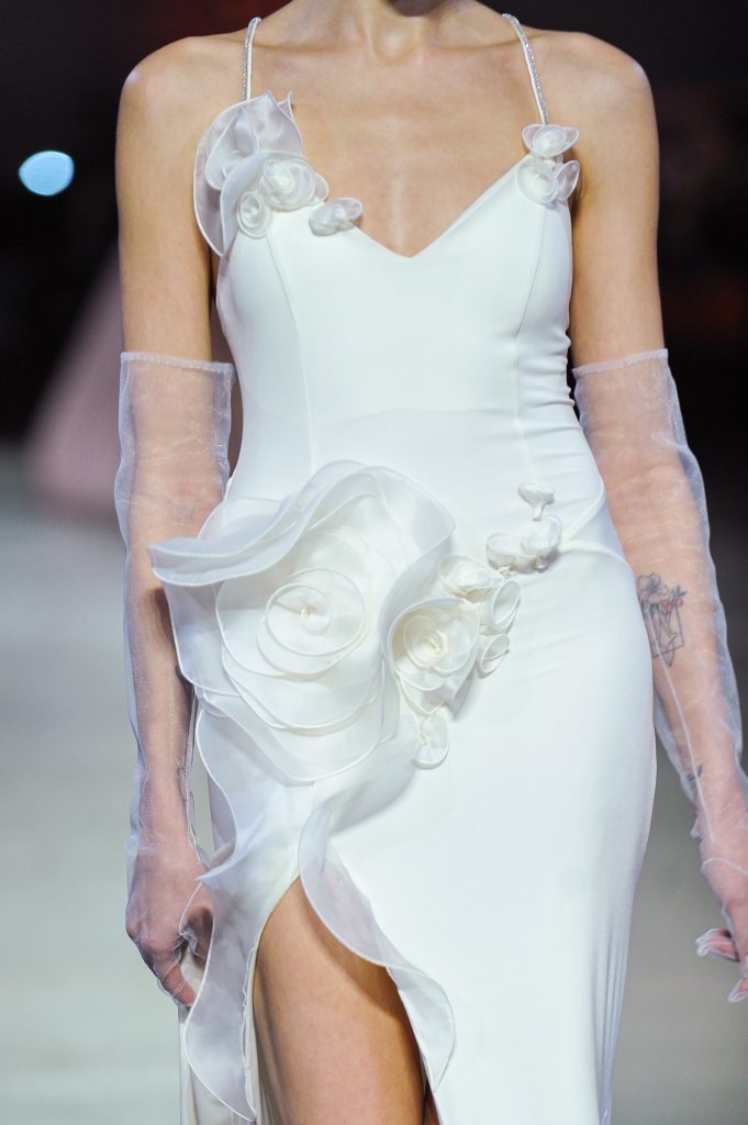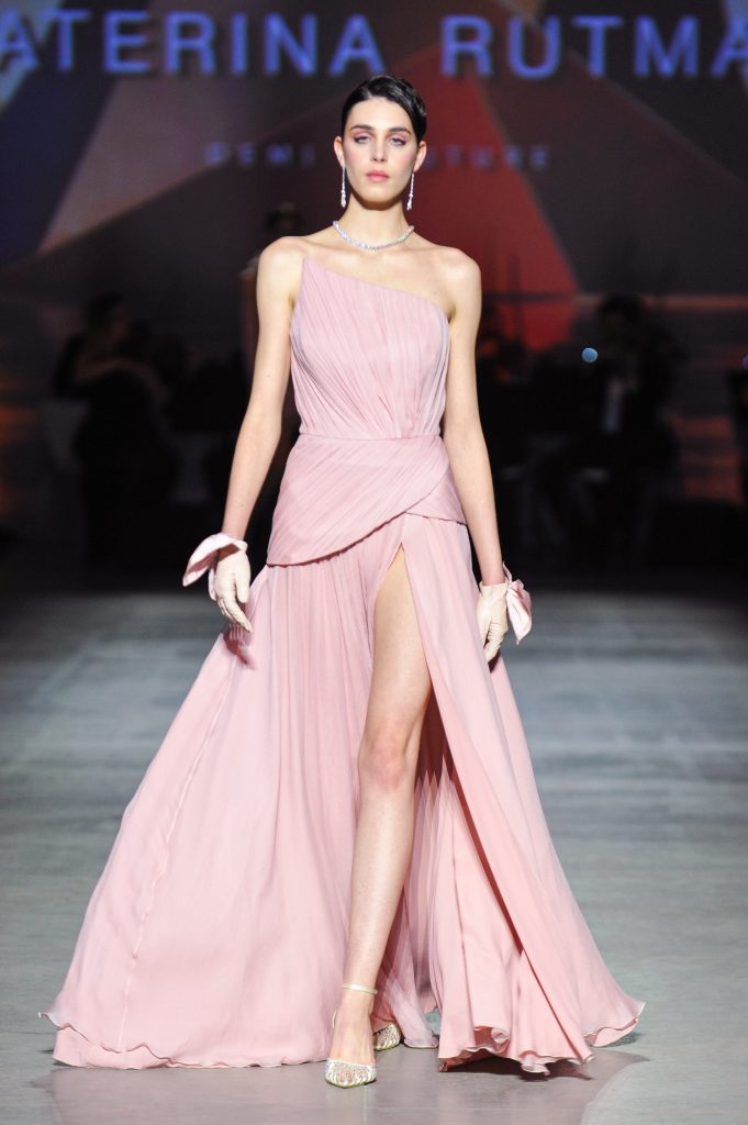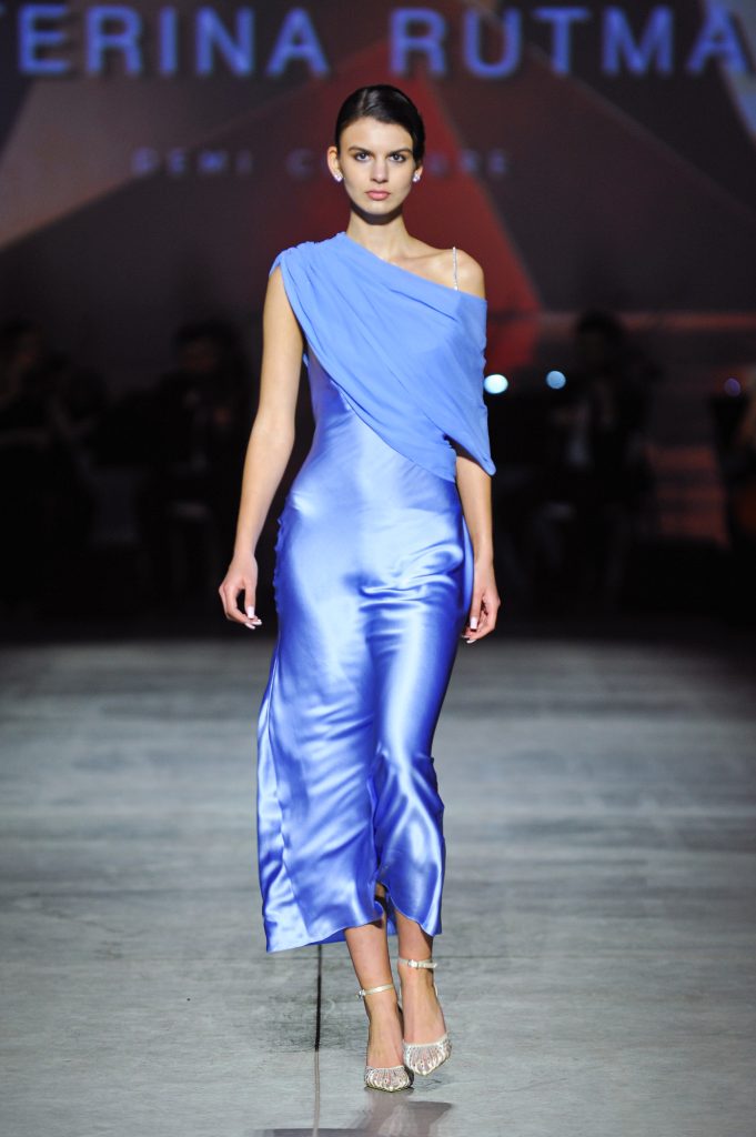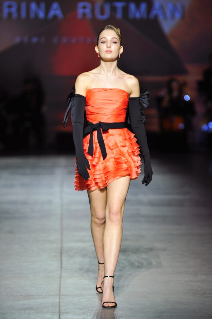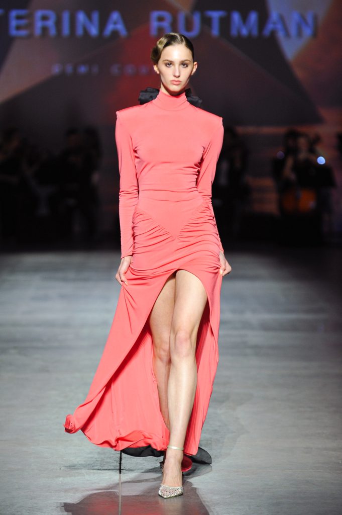 The silhouettes are constructed through geometry, asymmetry, and architectural logic, referencing Ekster’s principles of pure colour, diagonals, and contrasting planes. At the same time, bows and voluminous flowers — recognizable elements of the KATERINA RUTMAN signature — bring movement, emotionality, and a sense of modern femininity to the looks.
