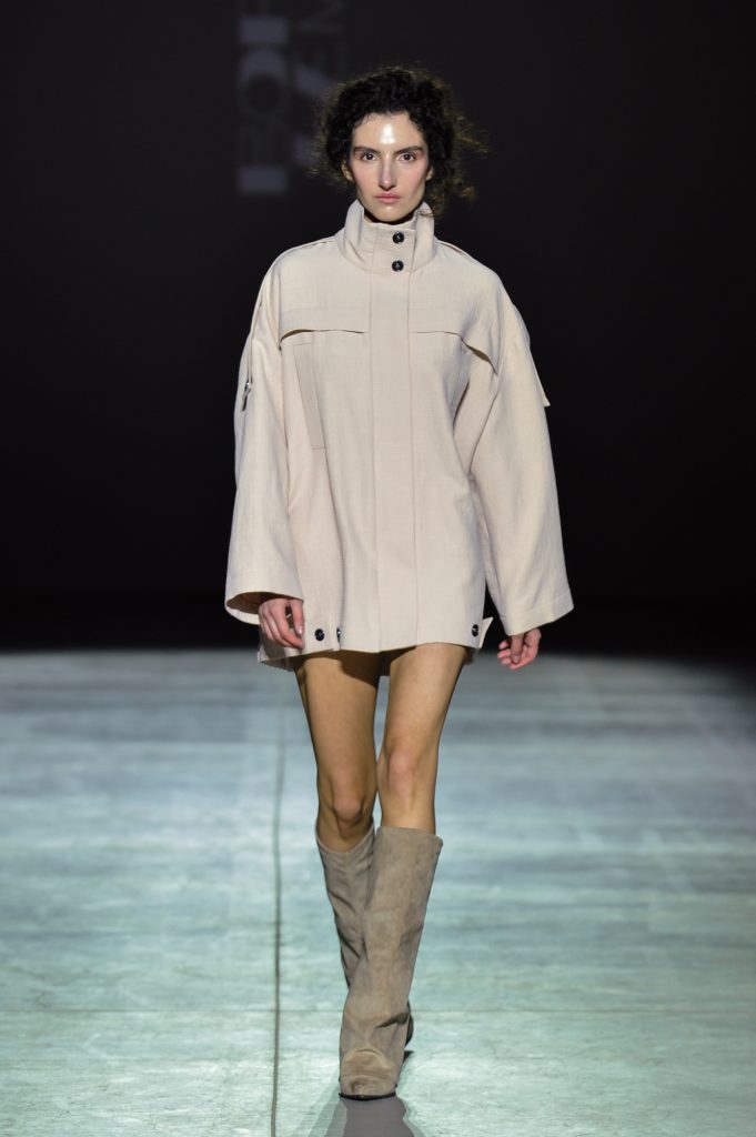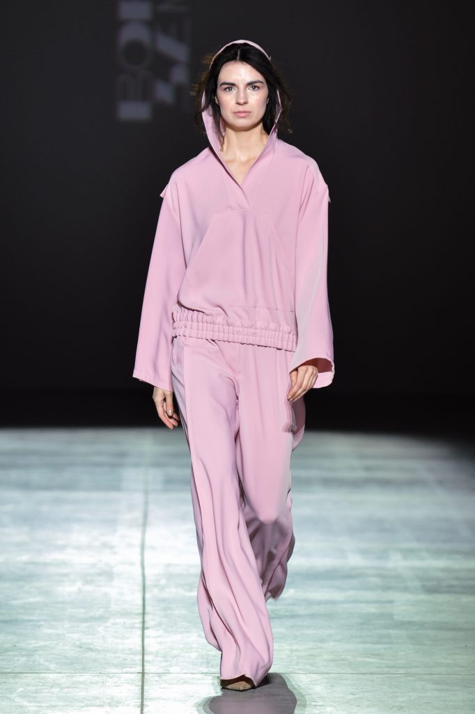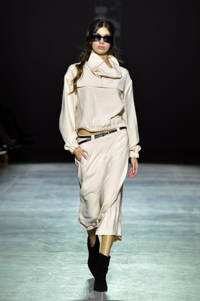Coats and tailored suits – with trousers and skirts – emphasize the waist and deliberately accentuate the hips, creating sculptural, architectural lines. Alongside them, Friday and weekend essentials appear: hoodies, sweatshirts, and bombers that bring ease and urban spontaneity into the wardrobe.
