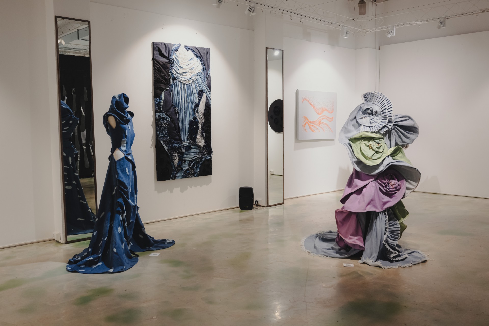 Nadya Dzyak presented a sculptural creation that embodies her signature focus on architectural forms, textile innovation, and experimental aesthetics. The work incorporates next-generation technologies including Smart Indigo®, Sonovia’s ultrasonic dyeing, and Rainbow plant-based treatments, all of which drastically reduce water consumption and eliminate harmful chemicals.