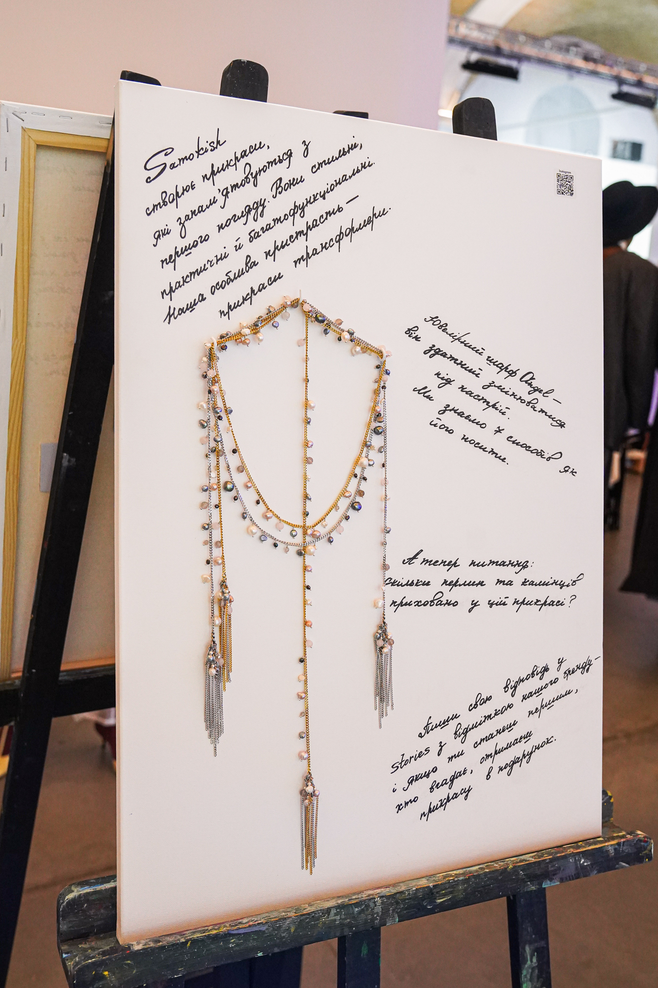 «Ця виставка – не лише про мистецтво, а й про спадкоємність. Я прагнула показати, як енергія полотен мого родича може продовжуватися у сучасному світі через форму, метал і прикрасу», – зазначає дизайнерка бренду SAMOKISH.