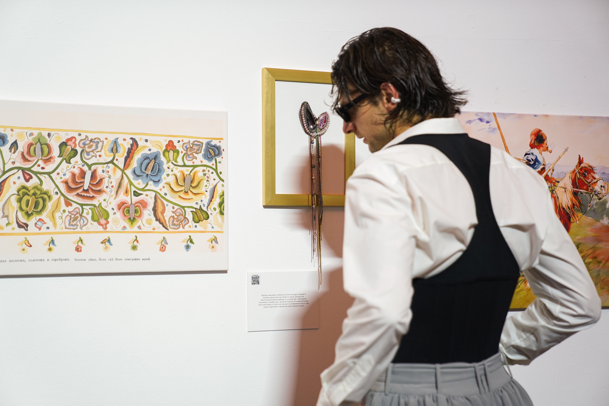 Гості побачать роботи художника у форматі репродукцій та авторські прикраси, створені спеціально для цієї експозиції. Кожен витвір мистецтва перегукується з ювелірними об’єктами, утворюючи новий вимір сприйняття: від динаміки батальних сцен до витончених мотивів українського орнаменту.